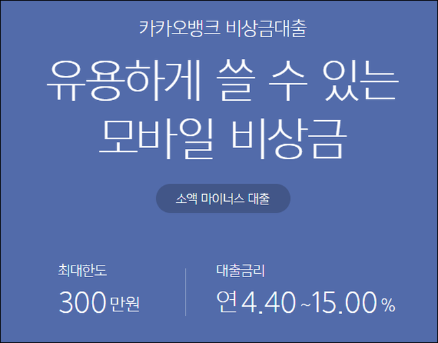 모바일 소액대출 300만원 받기 - 카카오뱅크 비상금대출