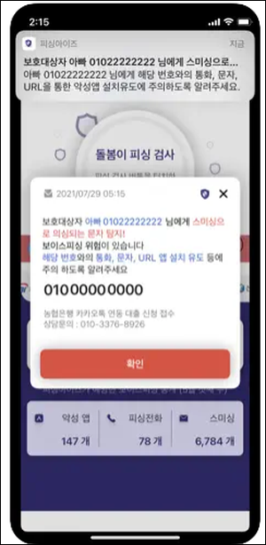 - 사용자 동의하에 제휴 금융사와 연동하여 금융 거래 시 실시간 차단 가능